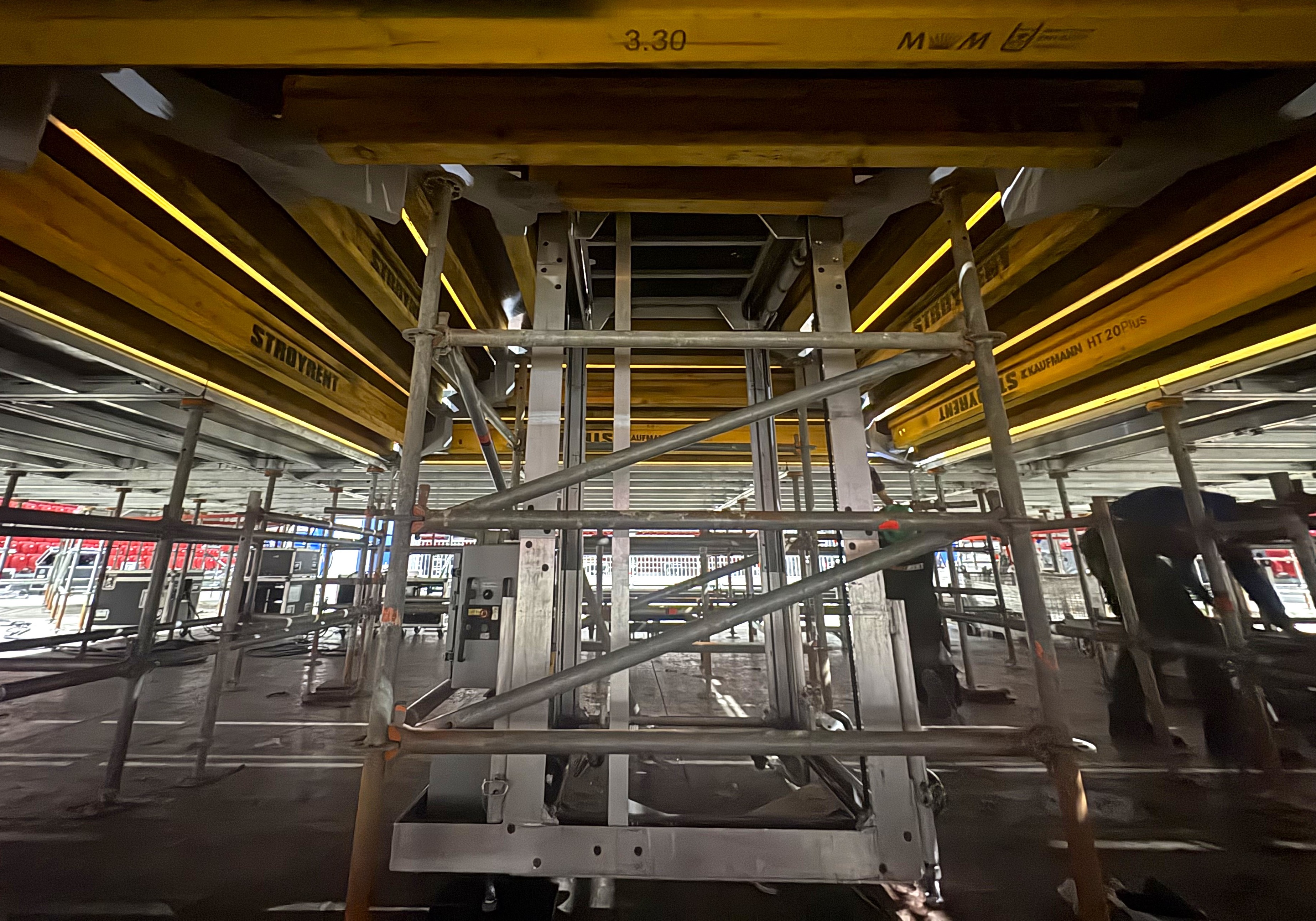 Това решение позволи изграждането на необходимия вътрешен обем, без компромис в носимоспособността и геометрията на сцената.